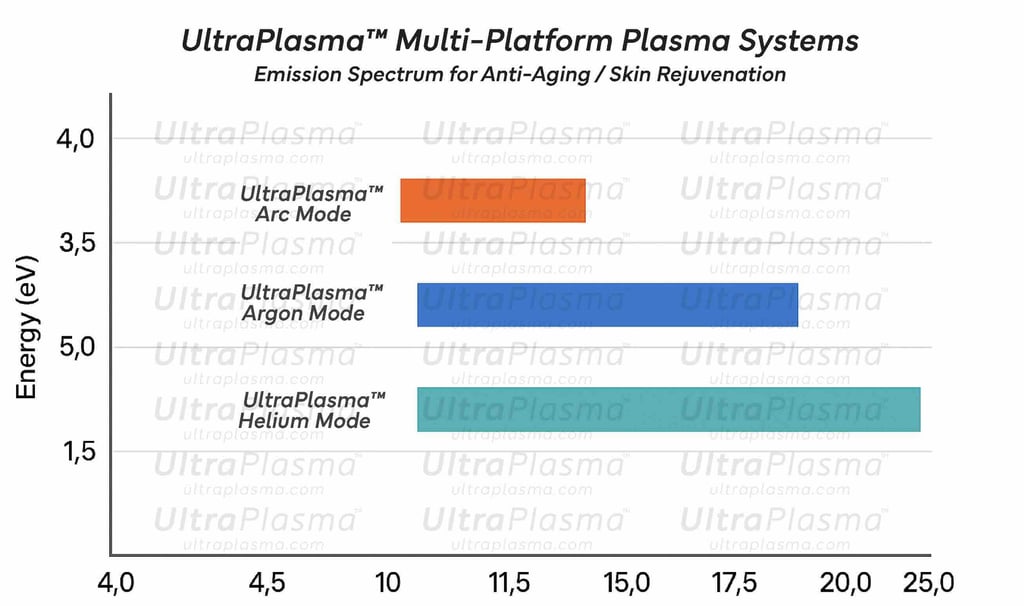 Arc Plasma (4.5–5.5 eV): Provides thermal ablation and superficial epidermal resurfacing.