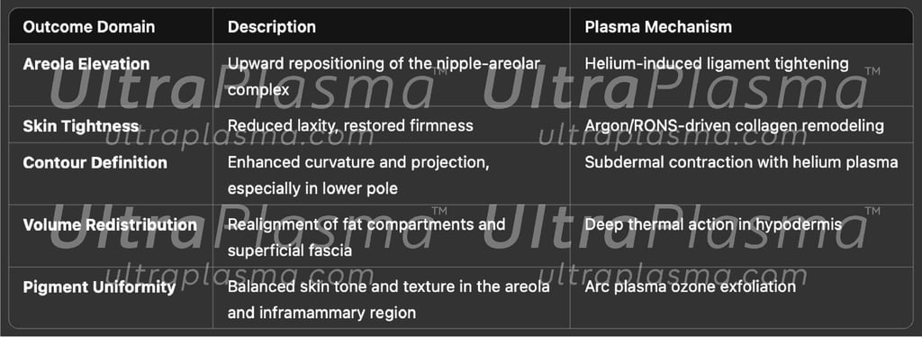 This article explores the anatomical basis, engineering principles, and clinical applications of UltraPlasma™ in breast reconstruction, shaping, and particularly plasma mastopexy (non-surgical breast lift), with a focus on epidermal, dermal, and hypodermal responses, alongside interactions with ozone, nitric oxide (NO), and reactive gas species.