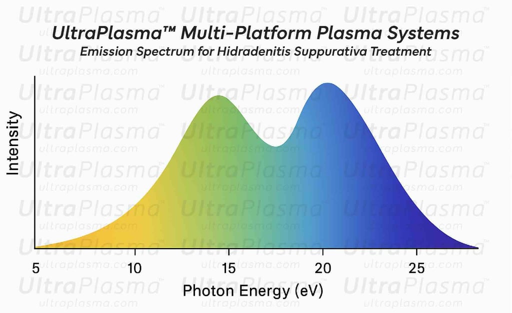 The therapeutic efficacy of UltraPlasma™ in treating Hidradenitis Suppurativa (HS) is largely governed by the plasma’s electromagnetic wavelength and electron volt (eV) energy output, which directly influence depth of penetration, biological specificity, and gas-molecule interaction efficiency in skin tissue.